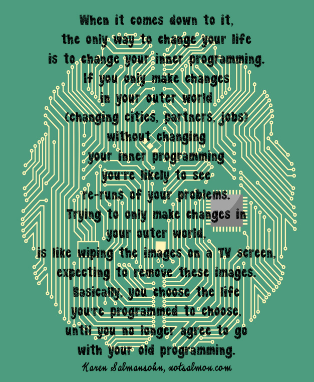 Because they make me happy, plain and simple, and remind me of positive values. A mentor of mine once told me ‘never confuse the artist with the art’. In this case, however, it does not apply! Karen Salmansohn has mastered the art of pattern interrupts — positive flashcards — to remind me of what is truly important. Read her thoughts on her craft here: