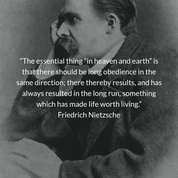 A long obedience in the same direction. Sound familiar? Famous atheist Friedrich Nietzsche said this in the early 20th Century book entitled Beyond Good and Evil. Source: A Long Obedience in the Same Direction
