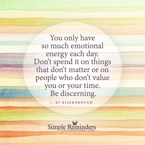 “You only have so much emotional energy each day. Don’t spend it on things that don’t matter or on people who don’t value you or your time. Be discerning.” — Di Riseborough