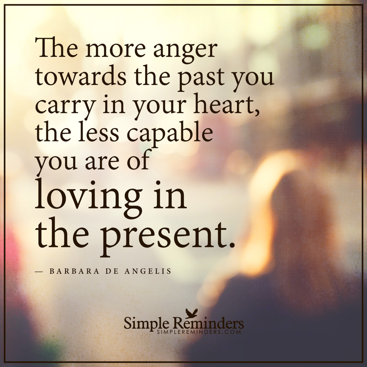 βThe more anger towards the past you carry in your heart, the less capable you are of loving in the present.β β Barbara De Angelis