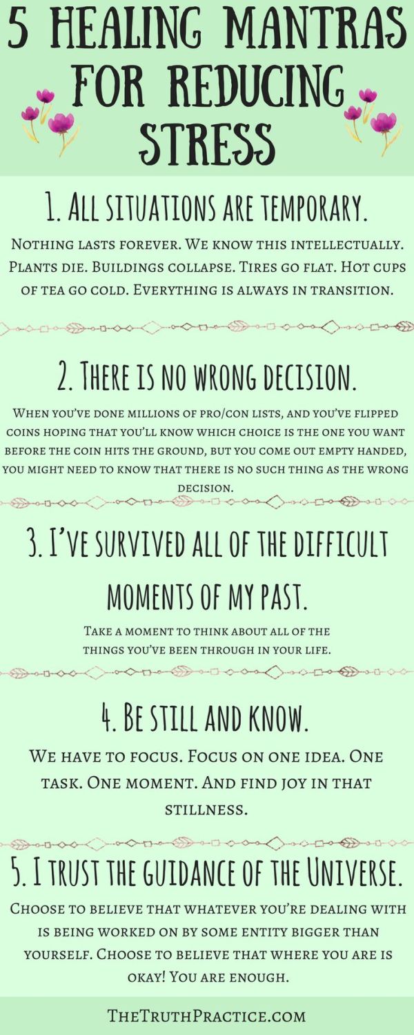 CLICK THE PIN TO READ ALL 10 healing mantras and affirmations for reducing stress and anxiety. These positive affirmations help you find peace and joy in life. Check out The Truth Practice to read about inspiration, authenticity, happy living, manifestation, getting rid of fear, intuition, self-love, self-care, words of wisdom, relationships, affirmations, finding passion, positive quotes, life lessons, and mantras.