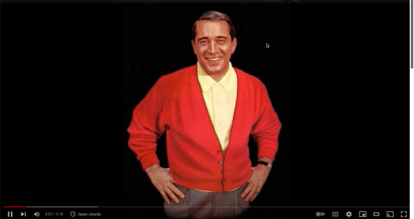 Just spent an hour with my therapist and she told me I need to stop thinking what I was thinking and start thinking positive things. It dawned on me that what she was really saying was I needed to take what I call the ‘Perry Como approach’ of ‘Accentuate the Positive’ although she was unfamiliar with the song. This is 2:13 of some of the best mental health advice you can get!