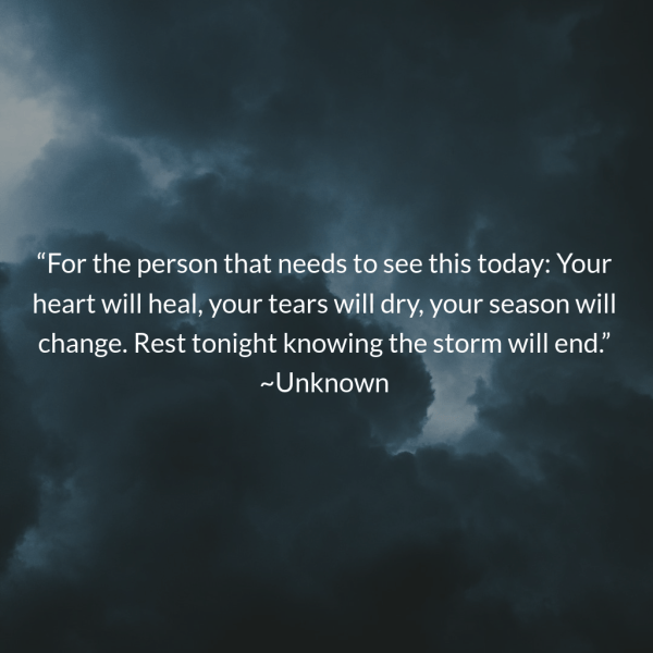 “For the person that needs to see this today: Your heart will heal, your tears will dry, your season will change. Rest tonight knowing the storm will end.” Source: If You Aren’t Happy with Yourself and Your Life Right Now… – Tiny Buddha
