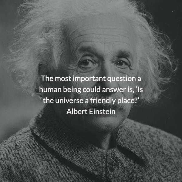 Karl Duffy writes ‘Albert Einstein once said that the most important question a human being could answer is, ‘Is the universe a friendly place?’ Source: For the good