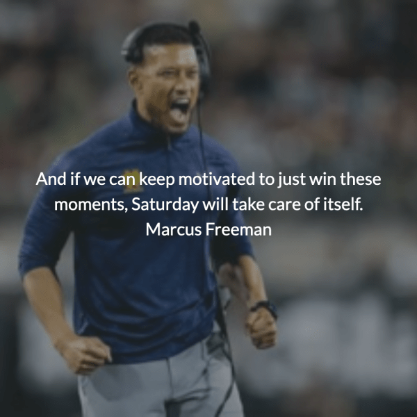 I’m a huge Notre Dame fan and I have been since I was 10. I’m inspired by stories of excellence in sports; great players like Thomas Muller of FC Bayern and great coaches like Vince Lombardi. Along those lines, I love this quote and the thoughts behind it: “It’s us versus Tennessee State today. That’s our mindset. They have meetings and practice today, and we have meetings and practice today. Who’s going to have the better meetings and practice? And if we can keep motivated to just win these moments, Saturday will take care of itself. It will. Source: Everything Marcus Freeman Said Monday Ahead of Tennessee State