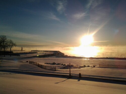 The fireworks are launched from the pier and people line the shore to watch the fun. As you can see, I was positioned on the beach, at the waters edge. If you’re familiar with the area, you might recognize the Algoma lighthouse – it’s that little red dot on the far right of the photo, just above the water.” via Big Red | Pops Digital.
