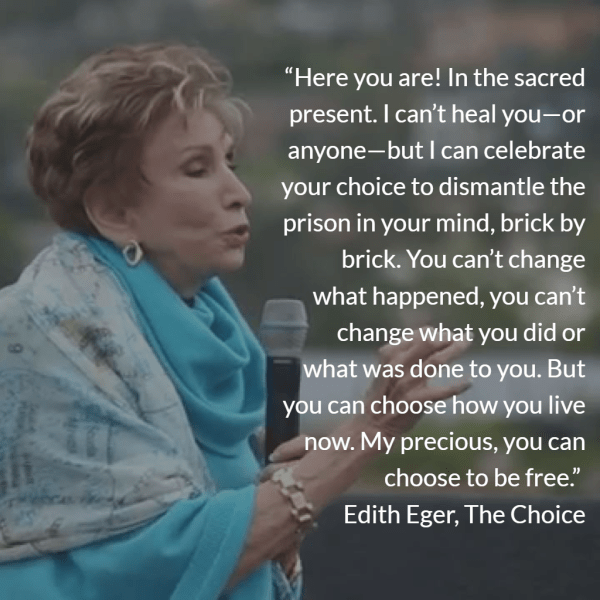 My friend RJ is always good for an epiphany or two every time we talk. Yesterday he introduced me to Edith Eva Eger, author of The Choice. She says: