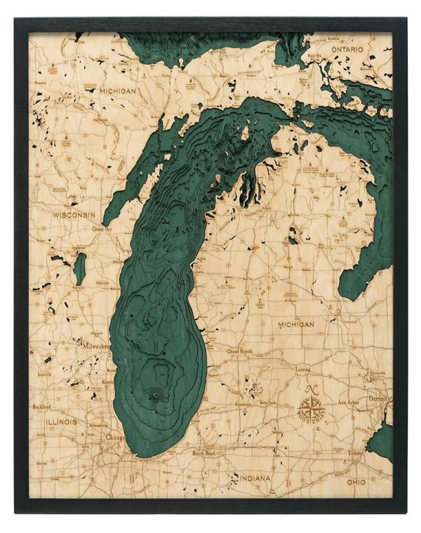Last weekend, Mary Katherine purchased a copy of this map for me. I first saw it while shopping with Tommy and Jenna in Grand Haven the weekend Rosie and Chris were married. I have always loved the lake, but the thought occurred to me that much of my life has been worked out in the frame of this map; Chicago suburbs, Wisconsin (including Algoma) and now Lansing.