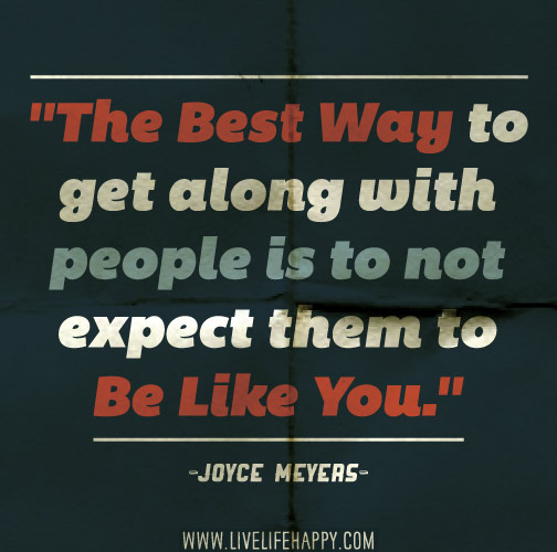 Let other people live their own lives, just as you’d like to be able to live yours. Stop judging what other people do and how they live. That’s their business. If it doesn’t affect you, stop caring about it. Stop comparing what you have, how you look, the money, the status, the possessions, the beauty to what you “think” others have. Don’t measure yourself against other people, measure yourself against your own yardstick.