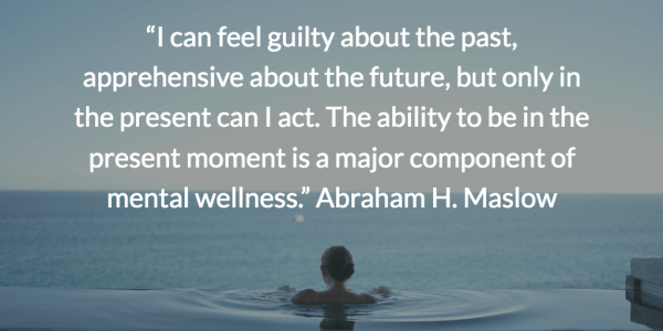 “I can feel guilty about the past, apprehensive about the future, but only in the present can I act.The ability to be in the present moment is a major component of mental wellness.” Abraham H. Maslow