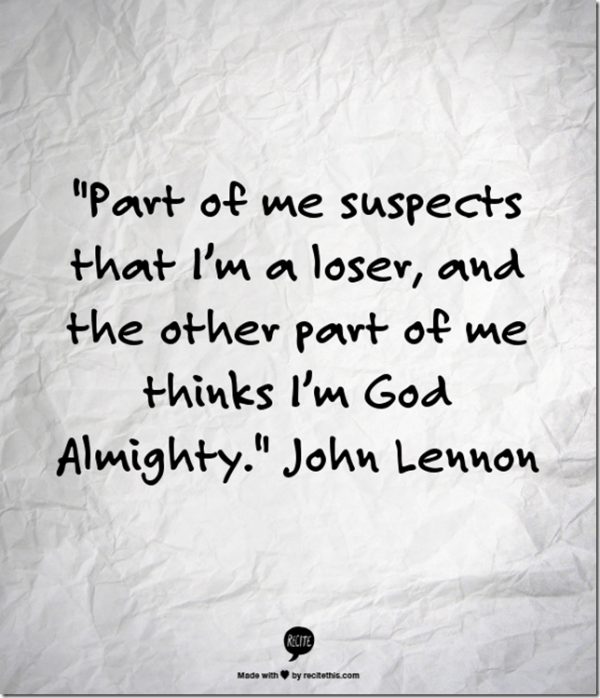 John Lennon said, “Part of me suspects that I’m a loser, and the other part of me thinks I’m God Almighty.”